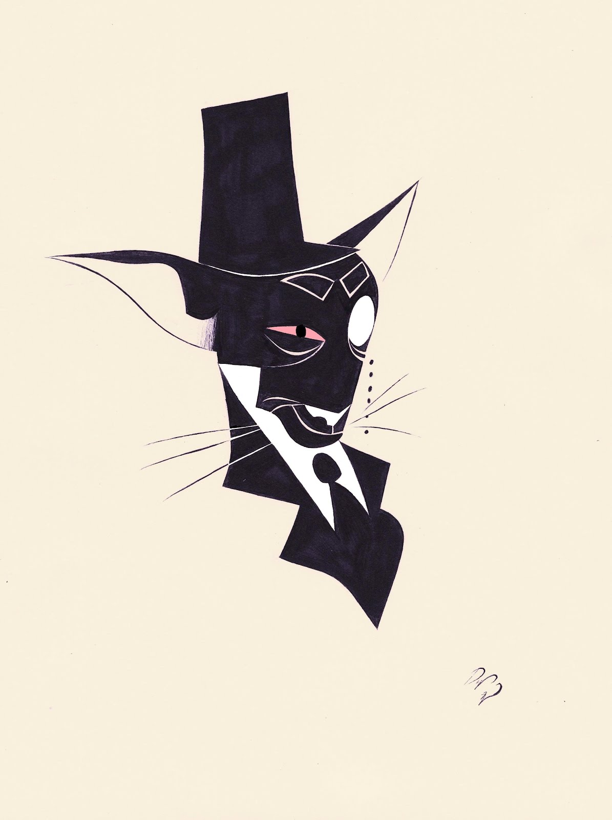 The most fun is exploring all the possibilities of what the character could be! I can mess around with small, medium and large shapes and really have a blast. I also like to suggest with my designs, meaning that I might not draw something fully out but leave just enough information so that it’s still easy understand. Hirschfeld was great at this because he came up with symbols for each of his caricatures and settings. So by studying his work I am able to interpret and manipulate symbols as I please. So I would say that coming up with symbols and a shape language would be the fun part. The most difficult part I would say is inking, some days I will get nervous and I will focus so much on making the perfect line that I will completely overlook the fact that I should be focusing on WHY I am drawing the line.